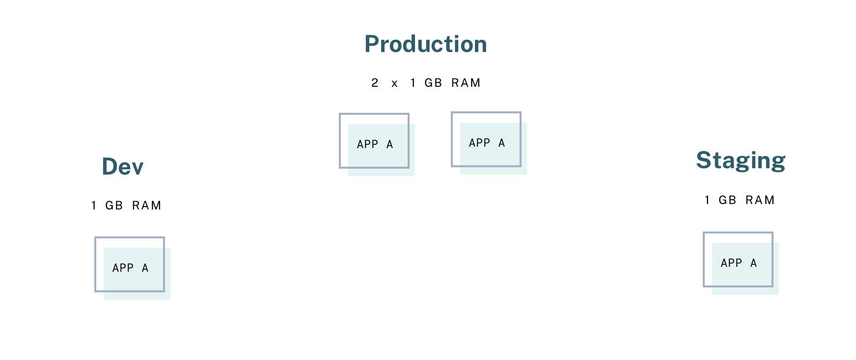 Suppose you have a FISMA Low app that requires 1 GB of memory. You will need 1 instance in dev, 1 instance in staging, and 2 in production.